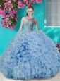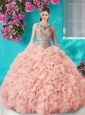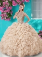 Perfect See Through Beaded Scoop Quinceanera Gown in Champagne