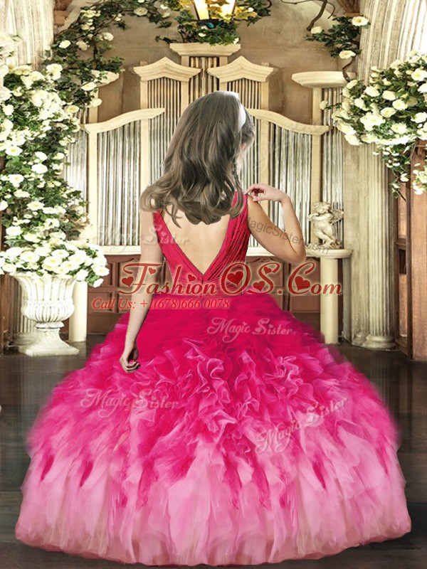 Perfect Sleeveless Backless Floor Length Beading and Ruffles Pageant Gowns For Girls