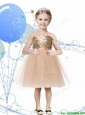 Perfect Spaghetti Straps Sashes and Sequins Flower Girl Dress in Champagne