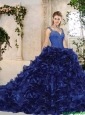 Perfect Straps Brush Train Quinceanera Gowns in Royal Blue