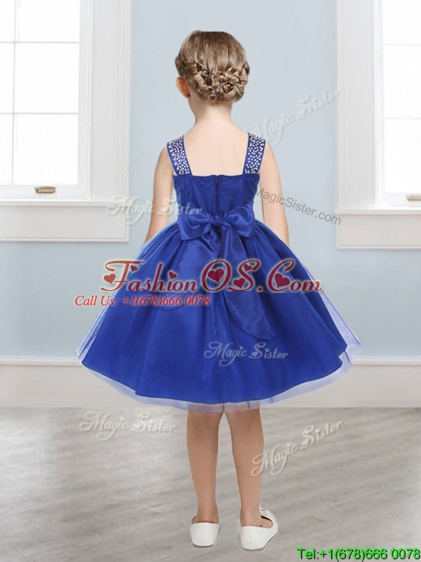 Perfect Straps Royal Blue Little Girl Pageant Dress with Beading and Bowknot
