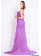 Perfect Sweetheart Lilac High Slit Prom Dresses with Brush Train