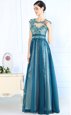Home >  Special Occasion Dresses >  Mother of the Bride Dresses > Perfect Teal Zipper Scoop Lace Mother Of The Bride Dress Chiffon Sleeveless