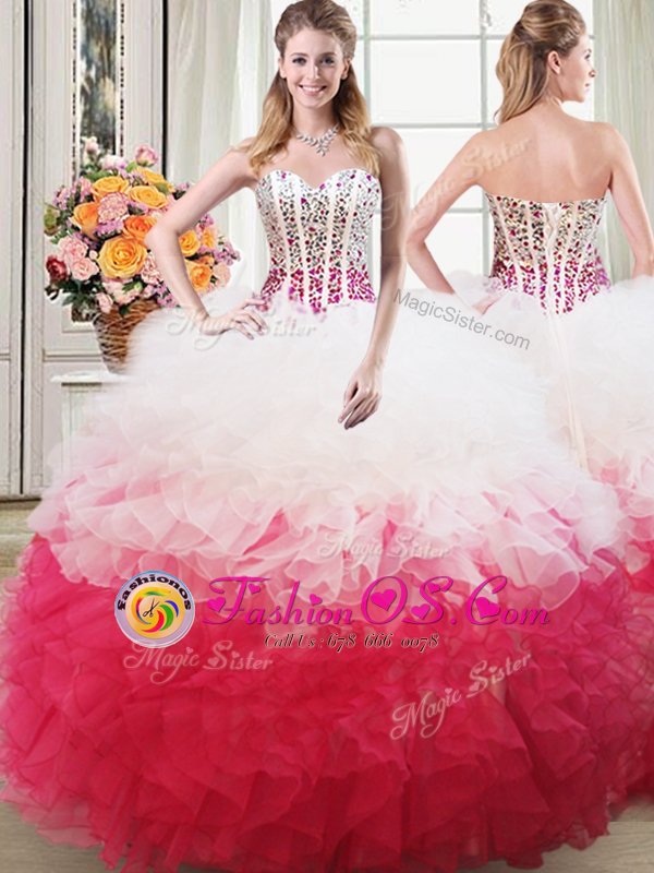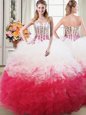 Perfect Three Piece White and Red High-neck Neckline Beading and Ruffles 15 Quinceanera Dress Sleeveless Lace Up