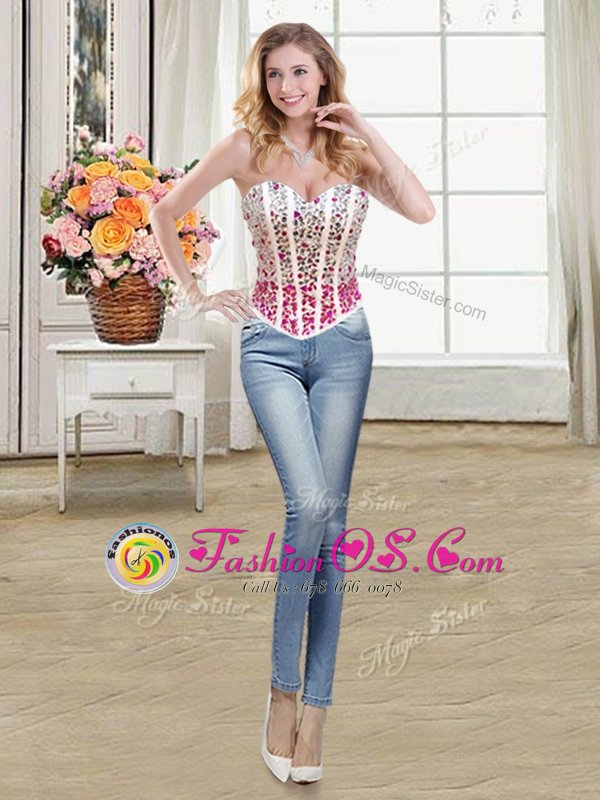 Home >  Quinceanera Dresses >  Detachable Quinceanera Skirts > Perfect Three Piece White and Red High-neck Neckline Beading and Ruffles 15 Quinceanera Dress Sleeveless Lace Up