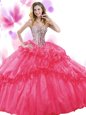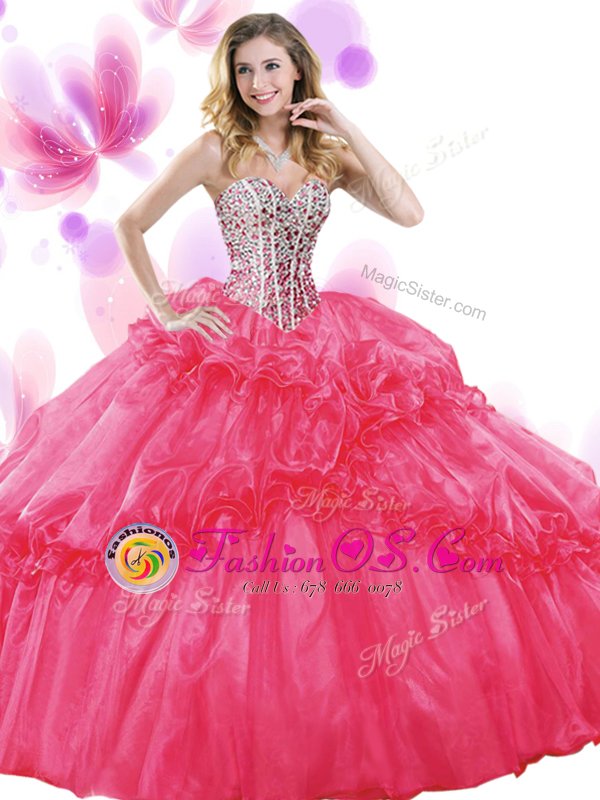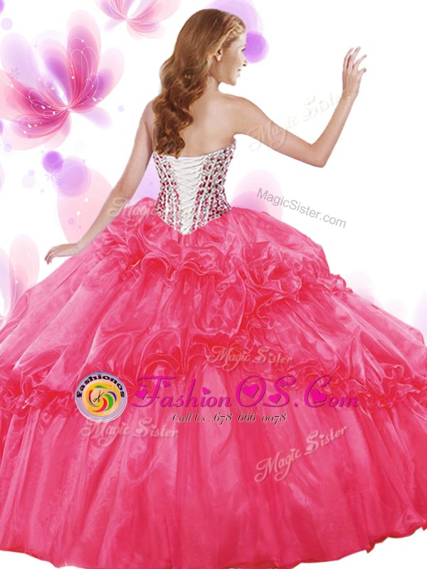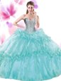 Perfect Turquoise Ball Gowns Beading and Pick Ups Quince Ball Gowns Lace Up Organza Sleeveless Floor Length