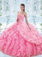 Perfect Visible Boning Ruffled Detachable Quinceanera Dresses in Rose Pink