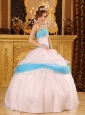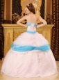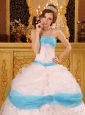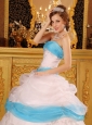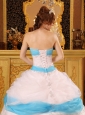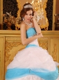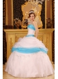 Home >  Quinceanera Dresses >  Cute Quinceanera Dresses > Perfect White and Aqua Quinceanera Dress Strapless Appliques Satin and Organza Ball Gown