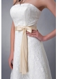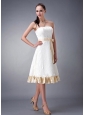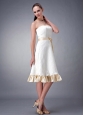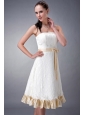 Perfect White and Champagne A-line / Princess Strapless Bridesmaid Dress Lace Sash Tea-length