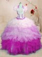 Perfect White And Purple Sleeveless Floor Length Embroidery and Sashes|ribbons Lace Up 15 Quinceanera Dress