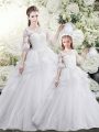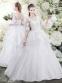 Perfect White Lace Up Sweet 16 Dresses Lace and Ruffles Half Sleeves Sweep Train