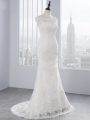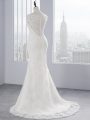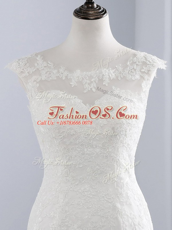 Perfect White Sleeveless Lace Brush Train Zipper Wedding Dresses for Wedding Party