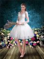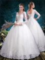 Perfect White V-neck Neckline Lace Wedding Dress 3 4 Length Sleeve Lace Up