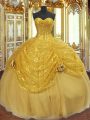 Pick Ups and Hand Made Flower 15 Quinceanera Dress Gold Lace Up Sleeveless Floor Length