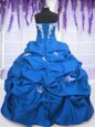 Pick Ups Blue Sleeveless Taffeta Lace Up Sweet 16 Quinceanera Dress for Military Ball and Sweet 16 and Quinceanera