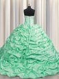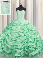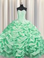Pick Ups Brush Train Ball Gowns Quinceanera Dress Apple Green Sweetheart Taffeta Sleeveless With Train Lace Up