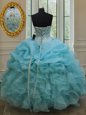 Pick Ups Floor Length Ball Gowns Sleeveless Baby Blue Quinceanera Dresses Lace Up