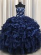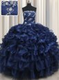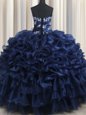 Home >  Quinceanera Dresses >  Unique Quinceanera Dresses > Pick Ups Floor Length Navy Blue Ball Gown Prom Dress Strapless Sleeveless Lace Up