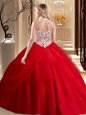 Pick Ups Halter Top Sleeveless Brush Train Lace Up Quince Ball Gowns Fuchsia Tulle