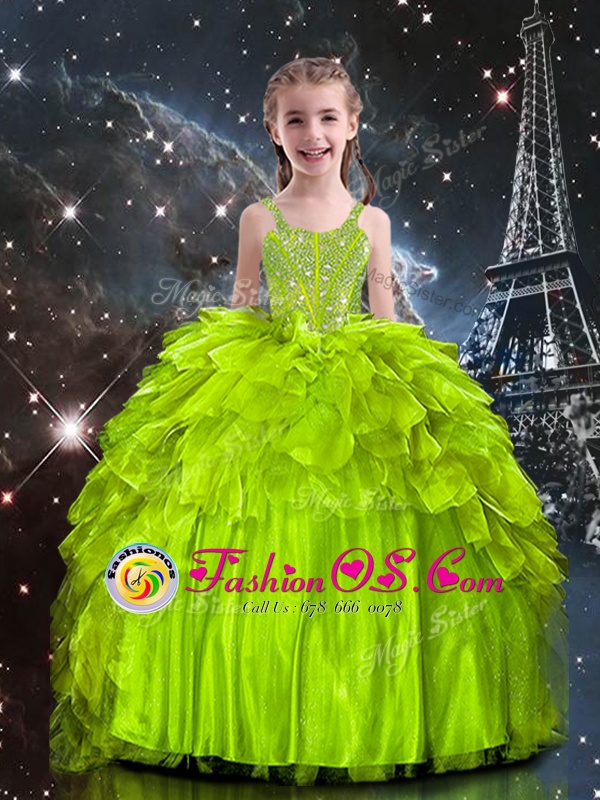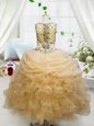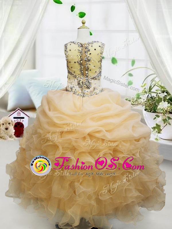 Pick Ups Straps Sleeveless Zipper Little Girl Pageant Dress Champagne Organza