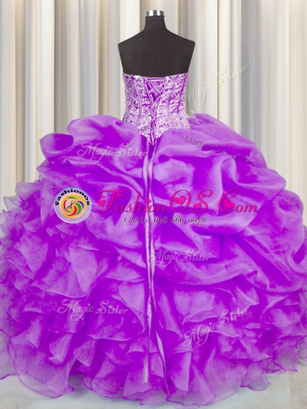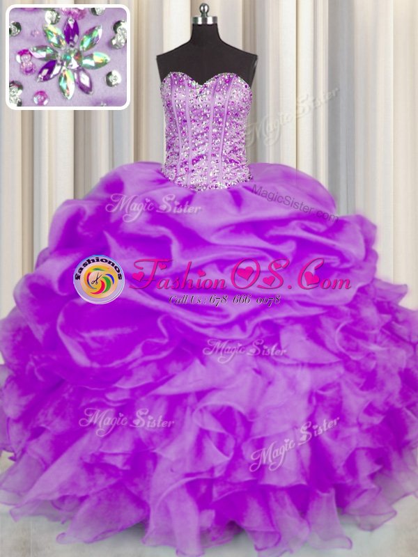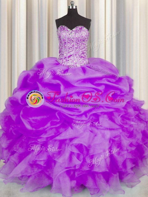 Pick Ups Sweetheart Sleeveless Lace Up Sweet 16 Dress Purple Organza