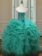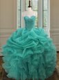 Pick Ups Turquoise Sleeveless Organza Lace Up 15 Quinceanera Dress for Military Ball and Sweet 16 and Quinceanera