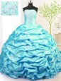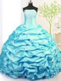Pick Ups With Train Aqua Blue Ball Gown Prom Dress Strapless Sleeveless Sweep Train Lace Up