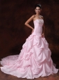 Home >  Wedding Dresses >  Latest Wedding Dresses > Pick-ups Pink Strapless A-Line Chapel Train Taffeta Customize 2013 New Styles Wedding Dress