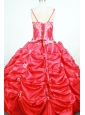 Pick-ups Straps Floor-length Red Taffeta Appliques Little Girl Pageant Dresses