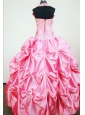 Pick-ups Straps Rose Pink Taffeta Beading Little Girl Pageant Dresses Custom Made
