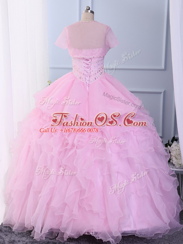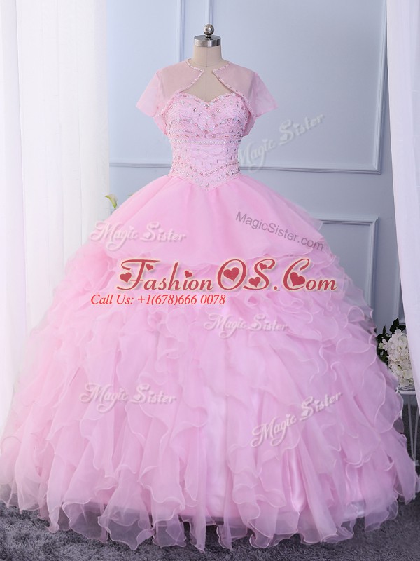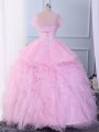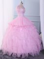 Pink 15 Quinceanera Dress Military Ball and Sweet 16 and Quinceanera with Beading and Ruffles Sweetheart Sleeveless Lace Up