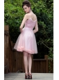 Pink A-Line / Princess Spaghetti Straps Knee-length Tulle Beading Prom / Homecoming Dress