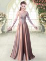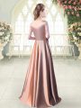 Pink A-line Scoop Half Sleeves Elastic Woven Satin Floor Length Zipper Sequins Evening Dress