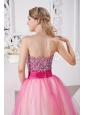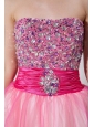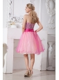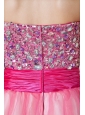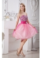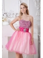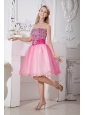 Home >  Prom Dresses >  Short Prom Dresses > Pink A-line Strapless Short Prom Dress Taffeta and Organza Beading Knee-length