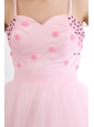 Home >  Prom Dresses >  Short Prom Dresses > Pink A-line Straps Short Prom Dress Organza Beading Mini-length