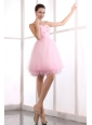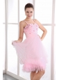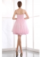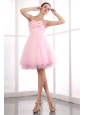 Pink A-line Straps Short Prom Dress Organza Beading Mini-length