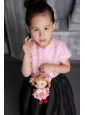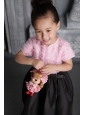 A special little girl dress. The pink bodice is entrusted by tiers of sheer fabric. The thin waistband with floral detail decorate the waist. The black column gives you the sense of classic. The whole dress leaves a princess-impression on your girl. A zipper up closure completes the look.