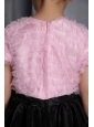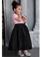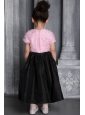 Home >  Flower Girl Dresses > Pink and Black Column / Sheath Scoop Tea-length Taffeta Ruffles Flower Girl Dress