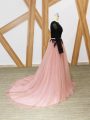Home >  Special Occasion Dresses >  Celebrity Dresses > Pink And Black Empire Lace and Appliques and Sashes ribbons Celebrity Inspired Dress Zipper Tulle Long Sleeves