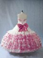 Pink And White Lace Up Sweetheart Embroidery and Ruffled Layers and Bowknot Quinceanera Dresses Organza Sleeveless