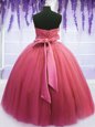 Pink Ball Gowns Beading and Belt Vestidos de Quinceanera Lace Up Tulle Sleeveless Floor Length