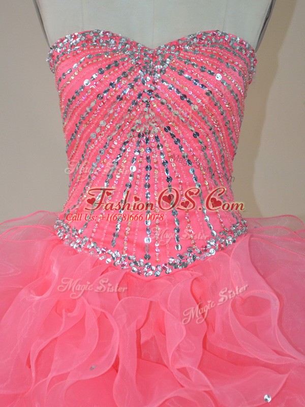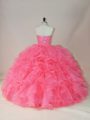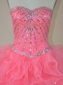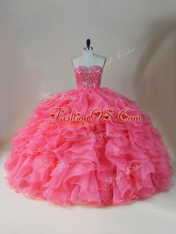 Pink Ball Gowns Organza Sweetheart Sleeveless Beading and Ruffles Floor Length Zipper 15 Quinceanera Dress