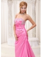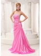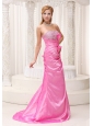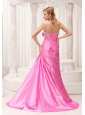 Pink Beaded Decorate Bust Ruched Bodice Brush Train Taffeta 2013 Prom / Evening Dress For Formal Evening