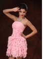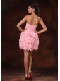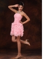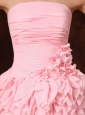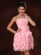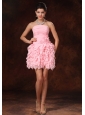 Pink Chiffon Ruffles And Hand Made Flowers Strapless Sweet 2013 Cocktail Dress For Custom Made In Dauphin Island Alabama