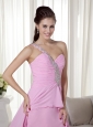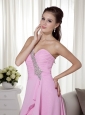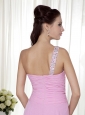 Pink Column / Sheath One Shoulder High-low Chiffon Beading Prom Dress