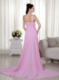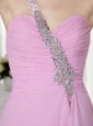 Elegant and Gorgeous! This pink prom dress with zipper is characterized by a modest sweetheart neckline and dazzling beaded one shoulder on the ruched bodice, which can accentuate your feminine quality. The mini-skirt shows off your perfect legs, overlayed a flowing chiffon fabric attached a train cascading to the floor, which makes you look like a pricess. Such a perfect dress, why not bring it to your party!