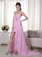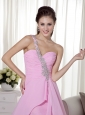 Home >  Prom Dresses >  High Low Prom Dresses > Pink Column / Sheath One Shoulder High-low Chiffon Beading Prom Dress