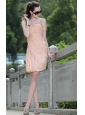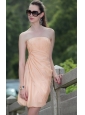 Home >  Prom Dresses >  Short Prom Dresses > Pink Column / Sheath Strapless Mini-length Organza Ruch Prom / Homecoming Dress