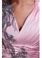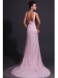 Home >  Prom Dresses >  Popular Prom Dresses > Pink Column V-neck Lace Brush Train Prom Dress with Appliques