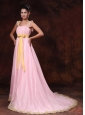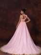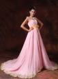 Pink Court Train Bowknot Chiffon A-line Celebrity Prom Gowns For 2013 Custom Made
